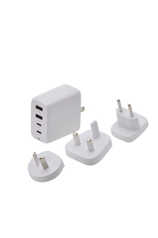 - Four interchangeable plugs included – AUS/NZ, EU, UK, US